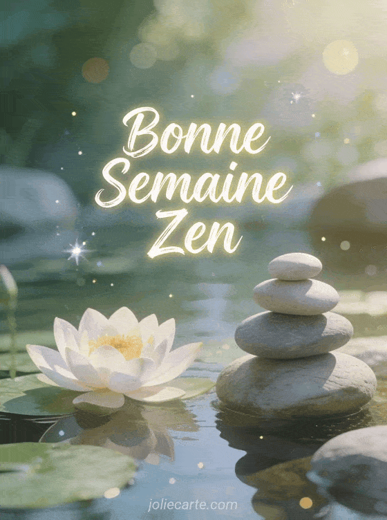 Cette image zen apporte calme et serenite pour la semaine. Essayez aussi une carte citation, une version drole ou ce moment de paix.