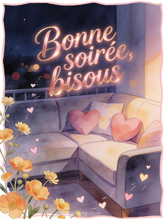 Carte bonne soirée bisous gif gratuite