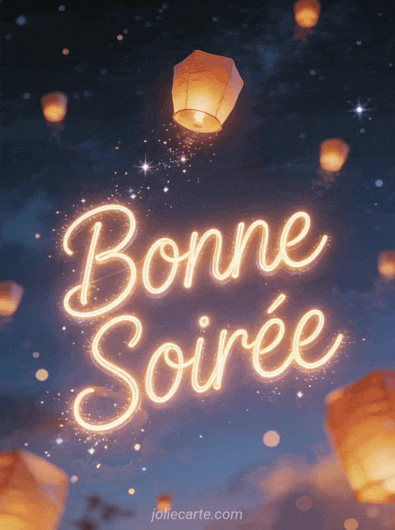 Cette bonne soirée image gif présente des lanternes magiques s'élevant dans un ciel étoilé. Animation féerique pour un message mémorable. Explorez aussi notre bonne-soiree-bisous tendre, notre bonne-soiree avec chaton et notre carte-bonne-soiree féerique.