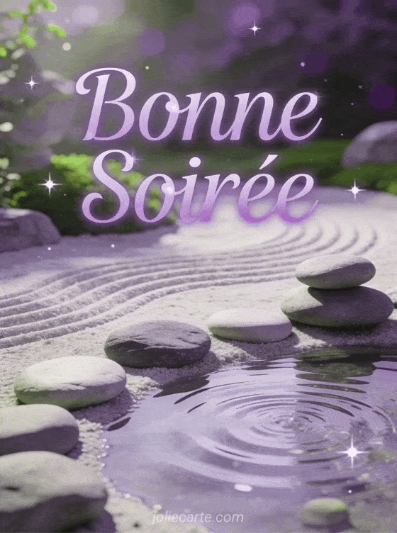 Cette carte bonne soirĂ©e repos gif animĂ© invite Ă la dĂ©tente avec son jardin zen et ses pierres douces. Parfaite aprĂšs une longue journĂ©e. DĂ©couvrez aussi notre bonne-fin-de-journee avec ourson, notre carte-bonne-soiree de rĂȘve et notre bonne-soiree-bisous affectueuse.