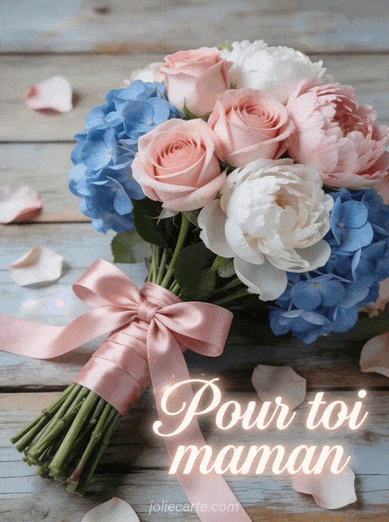 Offrez un bouquet de fleurs virtuel Ă votre maman pour lui montrer tout votre amour en un clic. Retrouvez aussi des mots doux pour maman, un hommage Ă maman je t'aime ou une image maman je t'aime trĂšs fort.