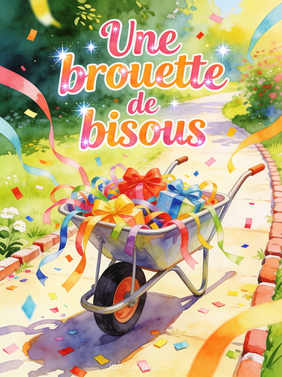 Brouette de bisous donne tout de suite l'idee d'une attention abondante et joyeuse, ideale pour envoyer beaucoup d'affection en quelques mots, surtout si vous la faites suivre d'un clin d'oeil facon xoxo, de gros bisous animes gratuits et une note legere de bisous papillon pour prolonger l'effet.