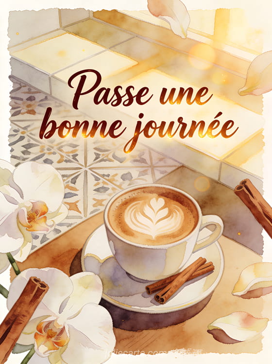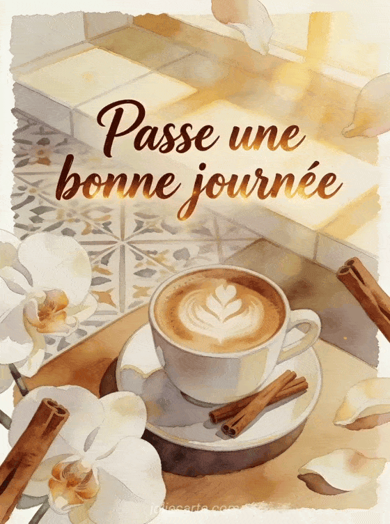 Un café bonne journée café gif accompagne un message simple, chaleureux et parfait pour commencer le matin. Il peut réchauffer une journée de neige à souhaiter, s'adresser à un papa que l'on pense à saluer, ou dire prends soin de toi en carte virtuelle avec douceur.