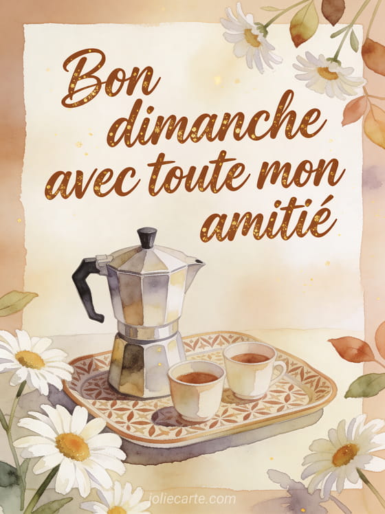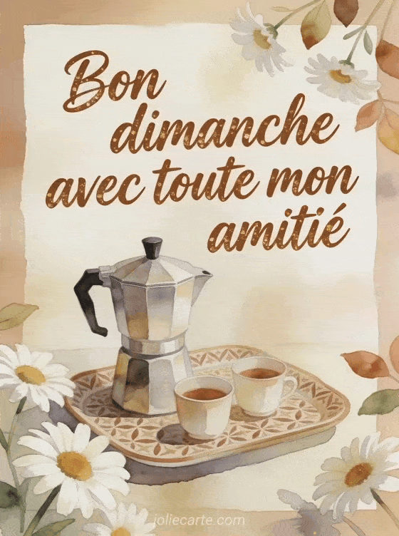 Une image bon dimanche amitié avec café donne un ton proche et chaleureux au message; elle peut accompagner une attention pour souhaiter dimanche, répondre à un dimanche ensoleillé en gif ou ouvrir un petit comment ça va du dimanche avec sincérité.