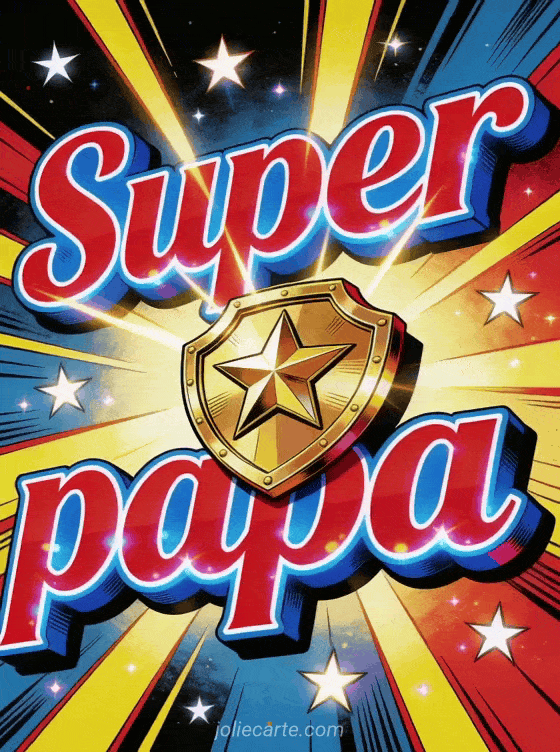 Montrez à votre papa qu'il est un vrai super-héros du quotidien avec cette carte fun et dynamique. Pour d'autres attentions, découvrez une carte jour de naissance papa, un dessin papa je t'aime ou un poÚme pour papa je t'aime.