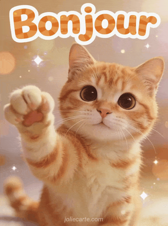 Partagez ce « Bonjour » avec son chat roux qui fait un signe de la patte. Découvrez aussi un bonjour amical, un bonjour romantique ou un bonjour matinal.