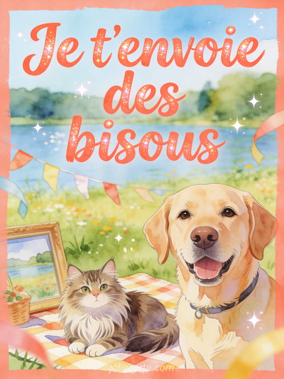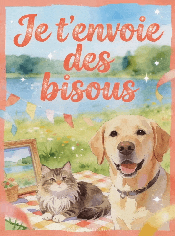 Chien chat bisous permet d'envoyer un message affectueux et leger, de l'ouvrir sur une envie franche de recevoir de la tendresse, de l'intensifier avec une affection qui se multiplie ou de garder une note animale plus originale selon l'humeur du moment.