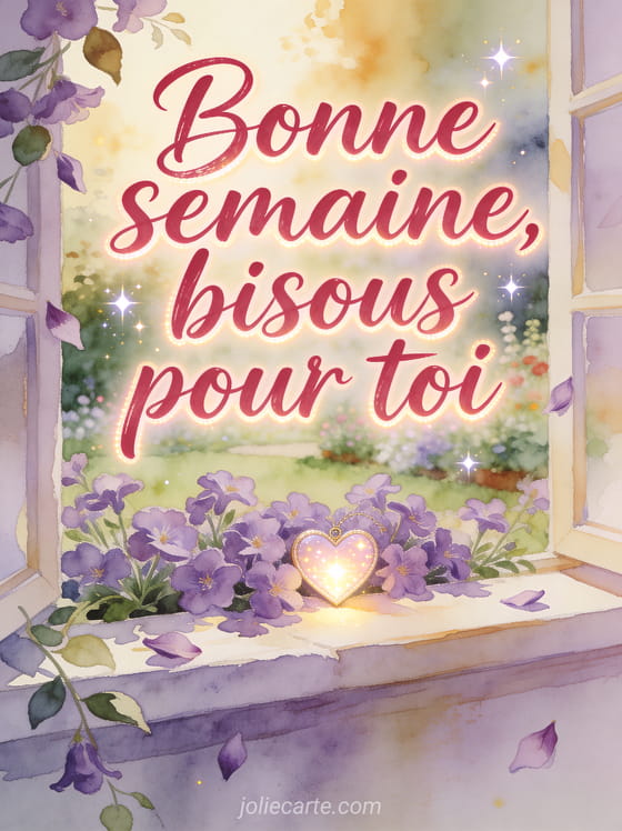 Cette carte coeur bisous de la semaine donne une dimension plus tendre Ă un simple souhait, comme une petite preuve d'affection. Elle rejoint des bisous pleins de tendresse, complĂšte un souhait de belle semaine et peut accompagner des images faciles Ă envoyer.