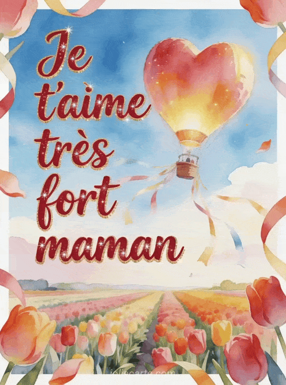 Un coeur je t'aime maman gif permet d'envoyer une déclaration affectueuse avec une touche légÚre et directe. Il peut précéder une image de bisous pour maman, répondre à un poÚme de merci pour papa et maman et compléter un court poÚme d'amour pour maman.