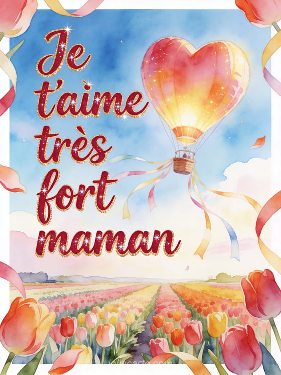 Je t'aime trĂšs fort maman un gif d'amour pour maman avec un grand coeur