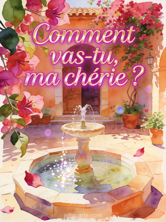 Comment vas tu ma chérie garde une formulation intime et soignée pour prendre des nouvelles sans détour. Cette carte peut accompagner une pensée pour son petit-fils, préciser une question tendre à ma chérie et rester proche de la façon la plus simple de demander des nouvelles.