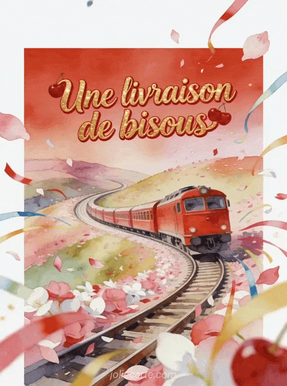 Convoi express de bisous donne à votre message un élan rapide, joyeux et affectueux, parfait pour surprendre avec tendresse. Pour compléter ce ton, ajoutez plein de gros bisous animés, des bisous pour tous ou une pluie de bisous en gif à votre envoi.