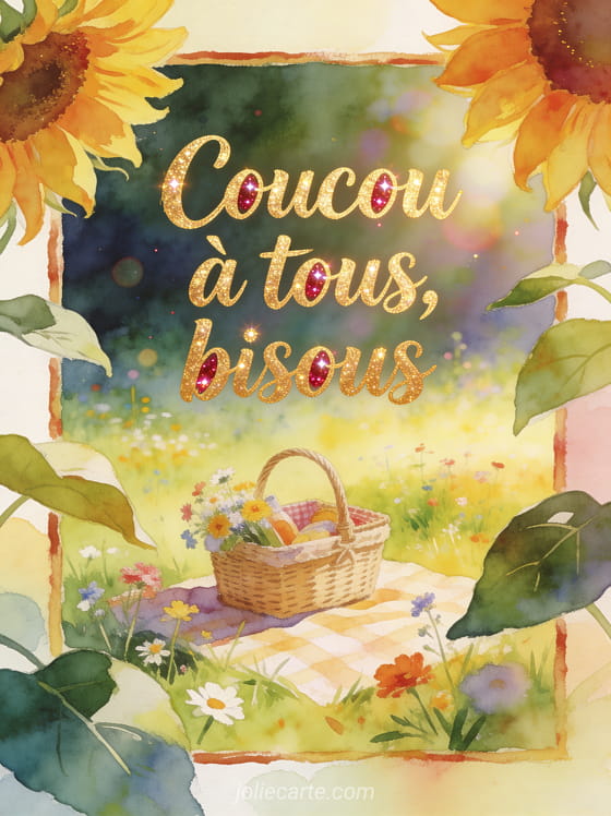Coucou bisous à tous sert à envoyer une pensée collective, simple et affectueuse. Cette carte garde le ton d'un kikou plein de bisous, peut précéder un à tout à l'heure en carte et devient une carte coucou animée facile à partager.