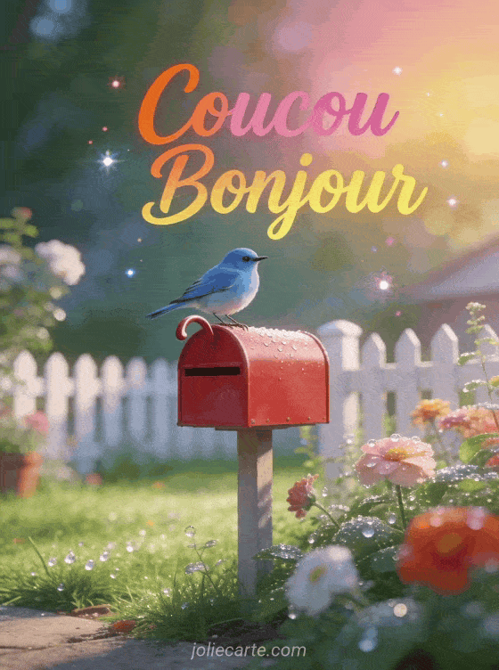 Partagez ce joyeux coucou bonjour avec un oiseau bleu matinal sur une boßte aux lettres. Une image fraßche pour bien commencer. Découvrez aussi un petit coucou pour toi, un coucou jaune ou une image bonjour originale.