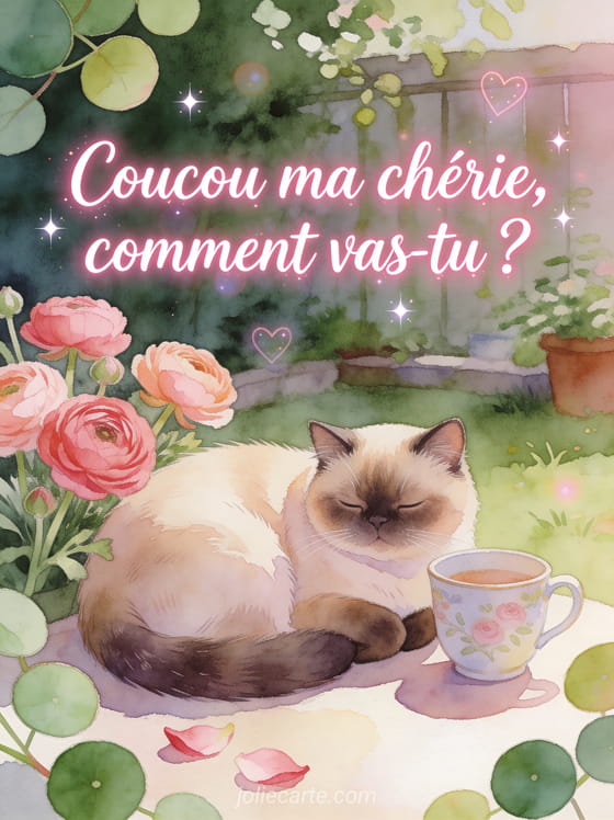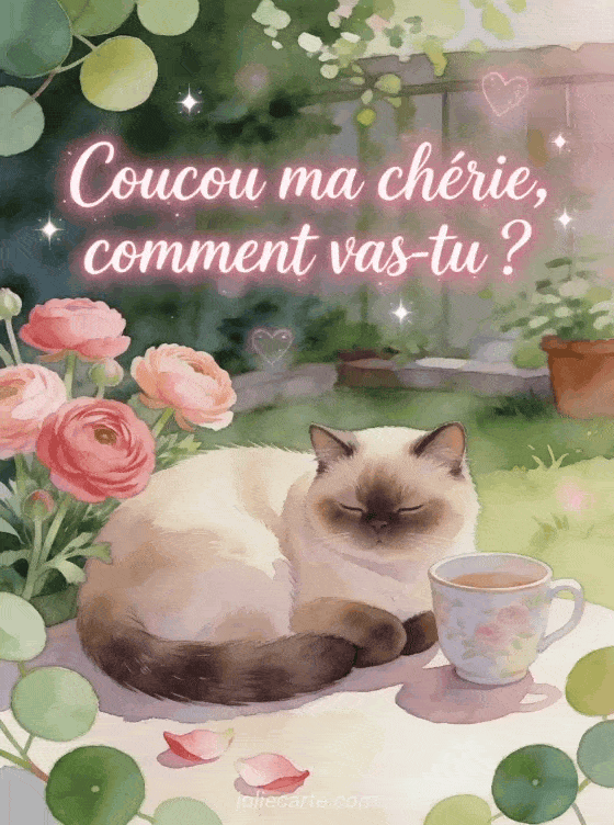 Coucou ma chérie comment vas-tu apporte une douceur familiÚre, idéale pour demander des nouvelles avec affection. On peut l'envoyer aprÚs une question posée dans la journée, choisir un bonjour amoureux plus direct ou glisser vers une confidence tendre à partager.