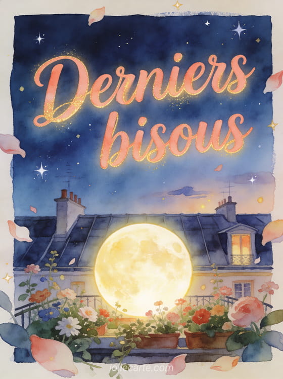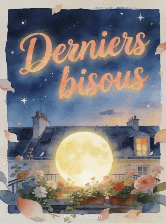 Un dernier bisous gif convient quand vous voulez laisser une trace affectueuse, douce et mémorable. Cette carte peut aussi se prolonger avec un bisou tendre en gif, une création autour du texte et de la tendresse ou des bisous animés version chats pour trouver la bonne tonalité.