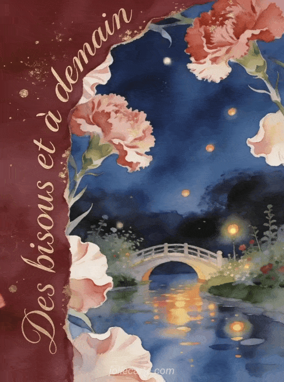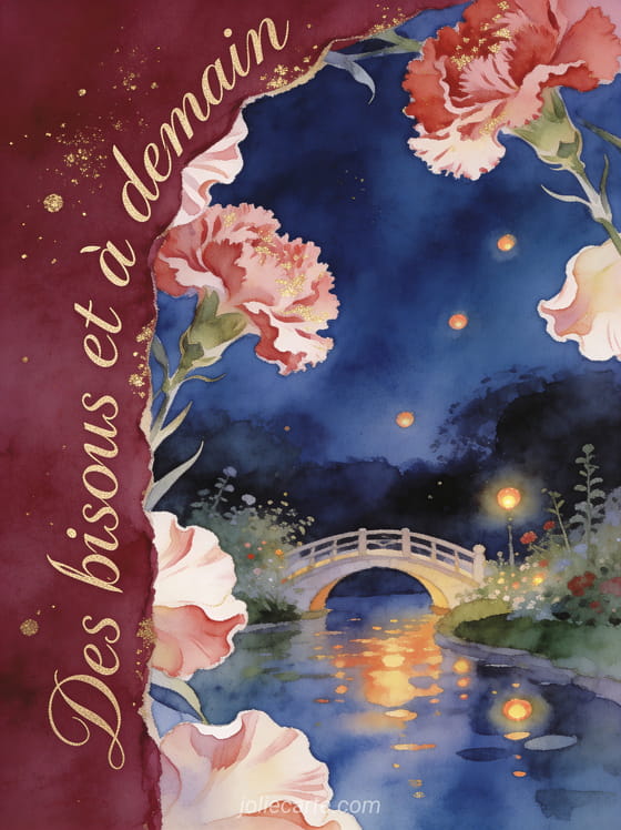 Des bisous a demain convient pour laisser une trace douce aprÚs un échange, avec simplicité et chaleur. Cette carte prolonge une image tendre pour dire à demain, rejoint des bisous gardés jusqu'au lendemain et complÚte un message affectueux avant demain.