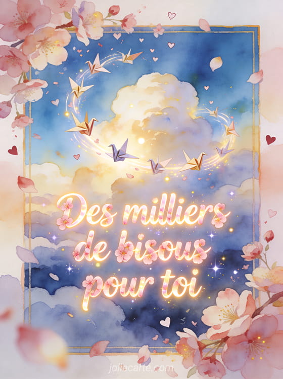 Cette carte gratuite autour de milliers de bisous pour toi peut aussi accompagner une image de bisous avec la main, faire Ă©cho Ă de gros bisous scintillants et prolonger votre message avec des bisous virtuels Ă partager, afin dâexprimer un attachement gĂ©nĂ©reux et immĂ©diat.