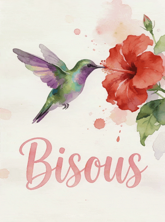 Partagez cette image « Bisous » en style aquarelle pour envoyer un baiser délicat et artistique. Découvrez aussi un joli bisou, des bisous rigolos ou des bisous arc-en-ciel.