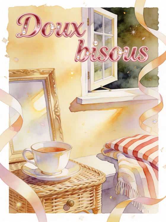 Douceur bisous est parfait pour exprimer une affection calme et sincere, enrichir ton message d'un eclat tout en legerete, choisir une autre jolie facon de dire je pense a toi ou garder une note tendre avec une presence animale pleine de douceur.