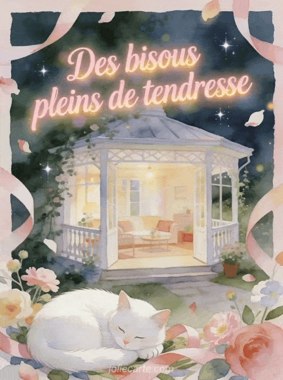 Un doux gif bisous tendresse aide à transmettre une affection délicate, calme et profondément sincÚre. Cette carte peut aussi se relier à un doux bisou en version animée, une formule simple autour du bisou ou de petits bisous animés pour ajuster la finesse du message.