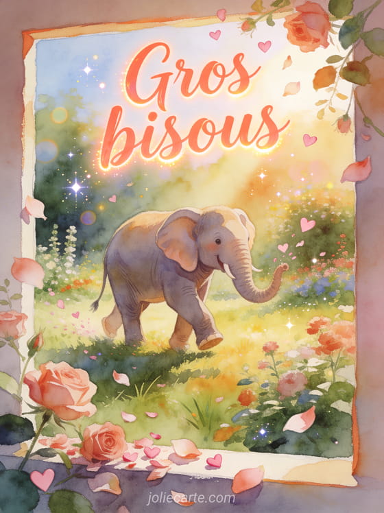 Carte elephant bisous gratuite