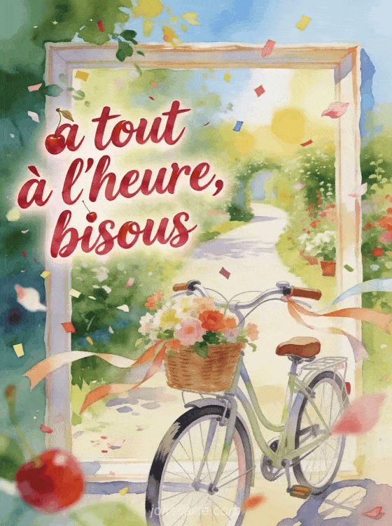 Si tu cherches gif à tout à l'heure bisous, cette carte aide à quitter quelqu'un avec douceur, elle peut s'appuyer sur des bisous animés à partager, gagner en chaleur grâce à une touche de tendresse très douce et se refermer sur un mot sucré sans excès.