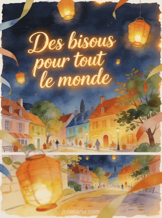 Le gif anime bisous a tous est parfait pour envoyer une pensee chaleureuse a plusieurs personnes. Cette carte gratuite se complete tres bien avec des bisous animes avec tortue, une belle envolee de bisous et des bisous accompagnes de fleurs pour varier vos messages.