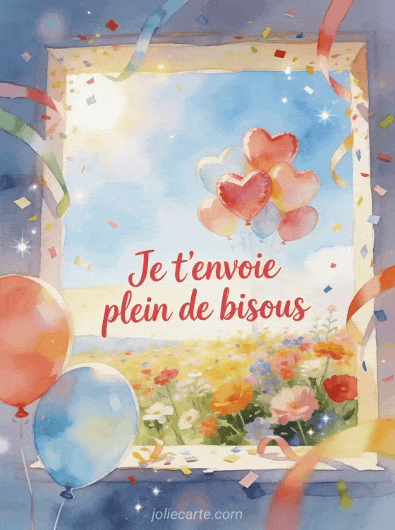 Gif animé bisous volants convient parfaitement quand vous voulez envoyer de l'affection avec un esprit léger et enjoué. Cette carte peut aussi dialoguer avec de trÚs grands bisous animés, le souvenir d'un premier bisou ou des bisous qui s'affichent à l'écran selon l'émotion recherchée.