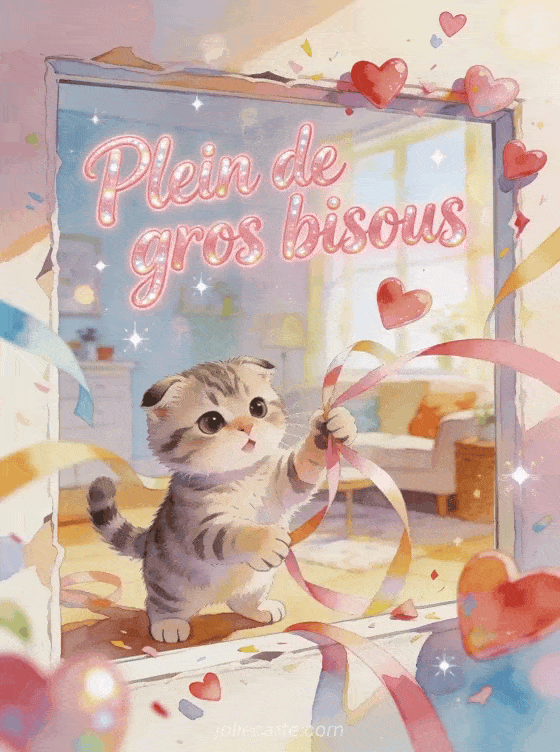 Gif chat bisous · Carte postal bisous · Message bisous tendre · Bisous voeux · Gif bisous humour