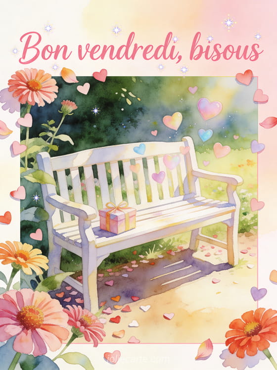 Un gif bisous du vendredi ajoute une note affectueuse au message du jour: il complÚte une carte du vendredi toute simple, donne plus d'élan à un message animé pour vendredi et peut accompagner un bon café du vendredi pour envoyer une pensée douce dÚs le matin.