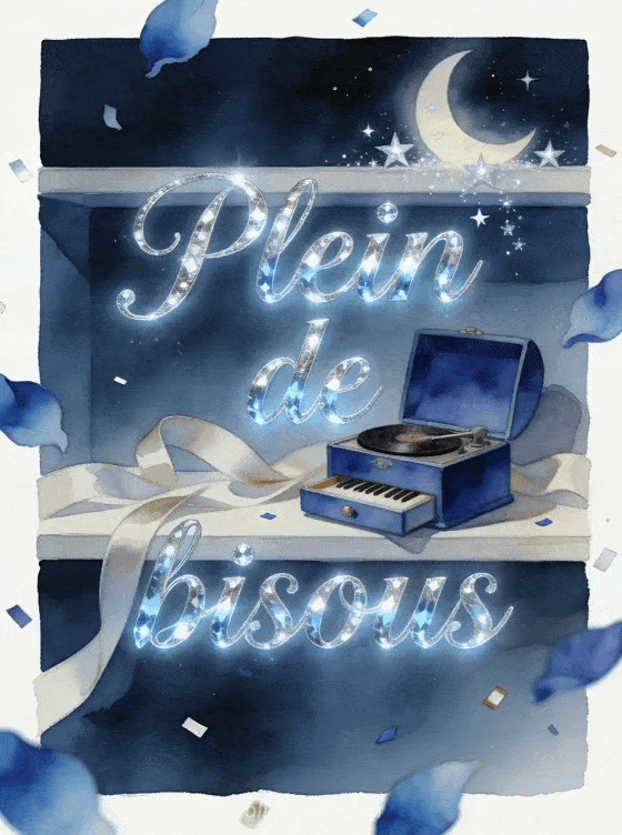 Gif bisous en bleu apporte une douceur plus calme et enveloppante au message, ideale quand on veut rester tendre avec une pointe de serenite, surtout si vous l'accompagnez d'bisous qui prennent leur envol, de une pluie de baisers qui te couvre et de une attention inattendue facon panthere pour enrichir la nuance.