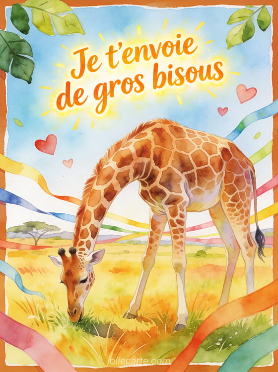 Carte gif bisous girafe gratuite