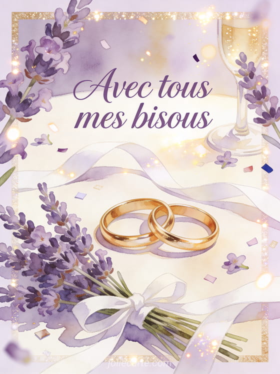 Un gif bisous mariage permet d'envoyer une attention elegante pour feliciter ou accompagner une union. Cette carte se marie aussi bien avec un doux bisou autour d'un the, complete de gros bisous en version animee et s'insere naturellement dans une animation de bisous a partager.