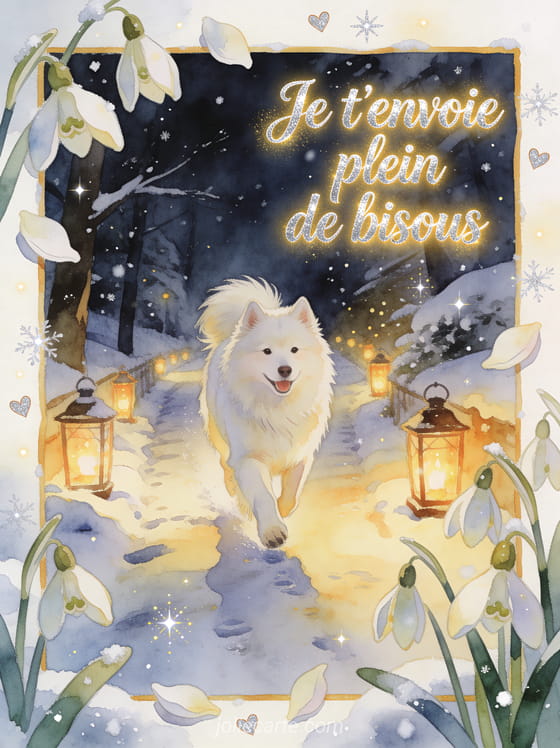 Ce gif bisous neigeux gratuit apporte une douceur réconfortante aux messages d'hiver, tout en s'accordant avec une pensée pour ma belle, des bisous au goût sucré ou une pause tendre autour du thé quand vous voulez varier l'intention.