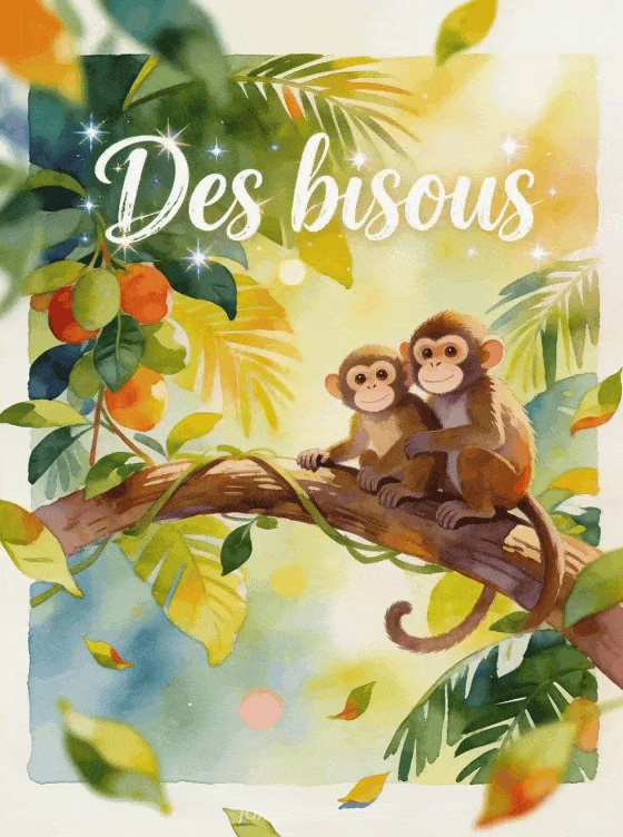 Ce gif bisous singe apporte une note joueuse a un message affectueux, surtout si tu veux l'inscrire dans une idee de gros bisous pour tout a l'heure, bisous pour te retrouver plus tard ou tendres bisous tout doux afin de garder un ton leger.