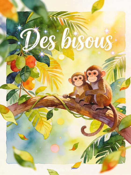 Carte gif bisous singe gratuite