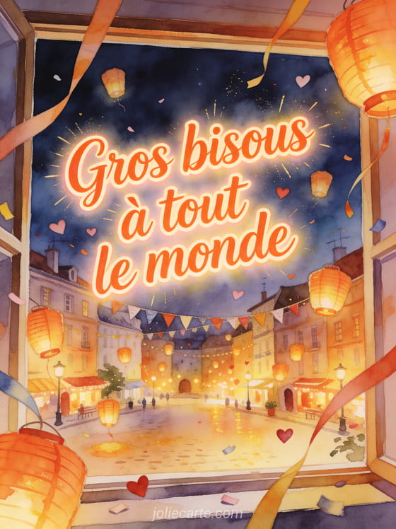 Pour partager un gif bisous tout le monde sans oublier personne, cette carte gratuite peut faire écho à un gif bisous plein de malice, des bisous venus de Provence et de gros bisous du matin, afin de diffuser une attention chaleureuse et facile à transmettre.