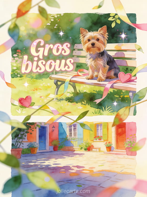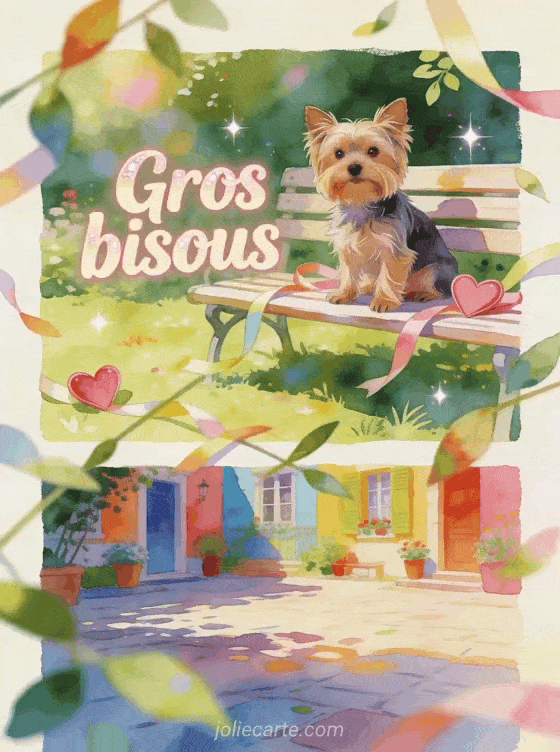 Avec ce gif bisous yorkshire, vous partagez facilement de gros bisous et une attention légÚre, dans un message qui trouve sa place entre plein de bisous tout doux, une pluie de bisous et une pensée affectueuse pour mon grand, pour faire plaisir sans attendre.