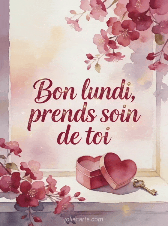 Un gif bon lundi coeur permet d'envoyer une attention tendre, proche et rassurante. Cette carte complète un lundi élégant pour elle, rejoint des bisous de bon lundi et ajoute une note scintillante au souhait.