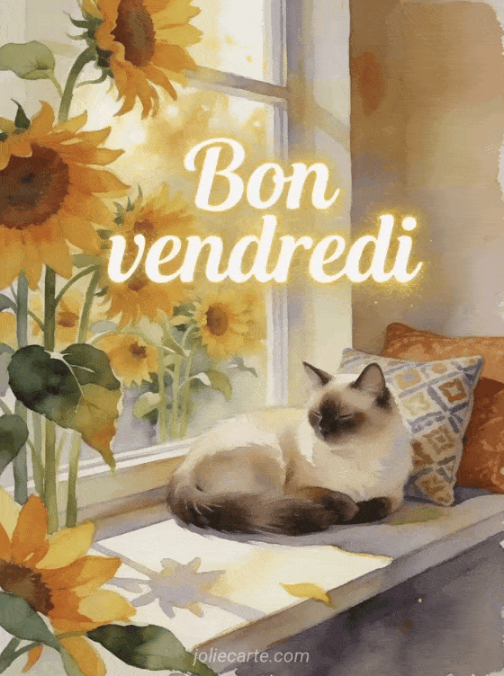 Un gif bon vendredi chat plaßt pour son cÎté tendre et facile à envoyer; il peut accompagner un texte simple du vendredi, compléter un souhait de belle journée ou rejoindre une image animée pleine d'entrain.