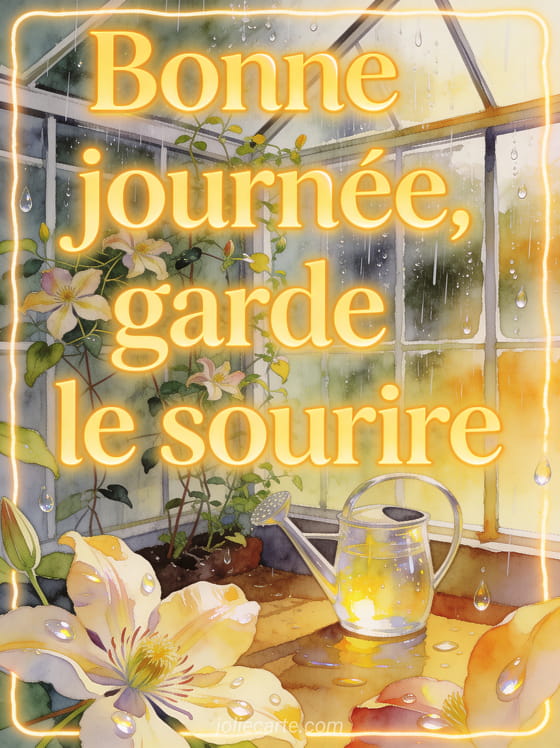 Bonne journée, garde le sourire un message positif pour une journée de pluie