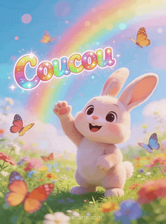 Partagez ce gif coucou animé avec un adorable lapin qui fait signe. Parfait pour envoyer un petit message joyeux. Découvrez aussi un coucou hibou, un coucou classique ou une image animée originale.