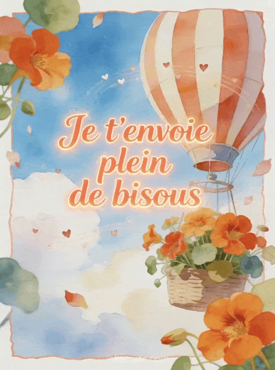 Gif envolée de bisous fonctionne trÚs bien pour une attention légÚre et animée, surtout si tu le rapproches de bisous envoyés en toute amitié, de un nuage de bisous trÚs tendre ou de une note de tendresse en gif afin de garder un message aérien, chaleureux et plein d'élan.