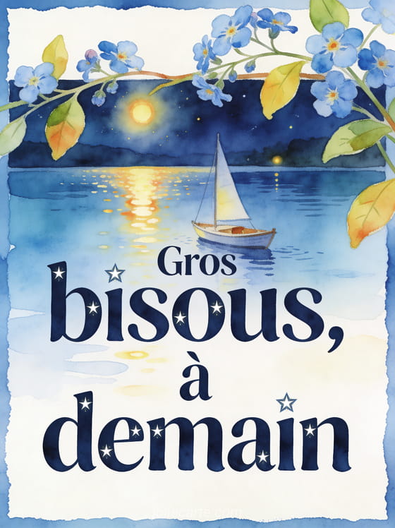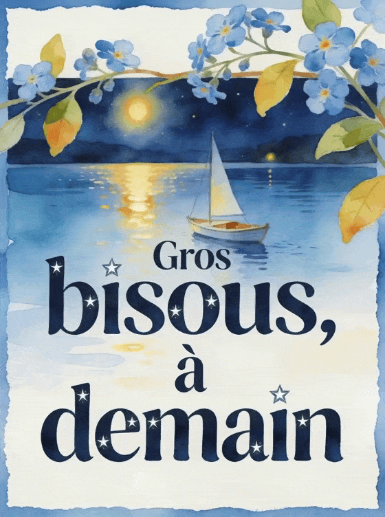 Gif gros bisous a demain permet de finir l'échange sur une note proche et rassurante. Cette carte s'accorde avec une version animée avec gros bisous, répond à un gif plus simple pour demain et complÚte des images tendres de fin de journée.