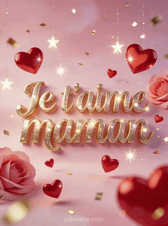 Envoyez un gif je t'aime maman scintillant et coloré pour lui montrer votre amour de façon originale. Découvrez aussi une image maman je t'aime écriture, une poésie maman je t'aime ou une carte adieu maman je t'aime.
