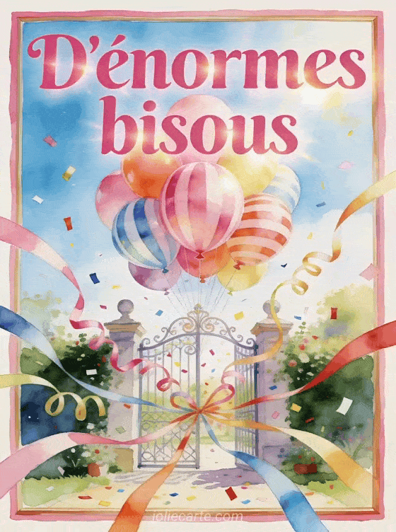 Si tu veux des gifs animés énormes bisous qui marquent les esprits, cette carte gratuite peut rejoindre des gifs rose et bisous, une image bisous au charme vintage et un gif de bisous tout doux, pour transmettre une attention ample, joyeuse et très chaleureuse.