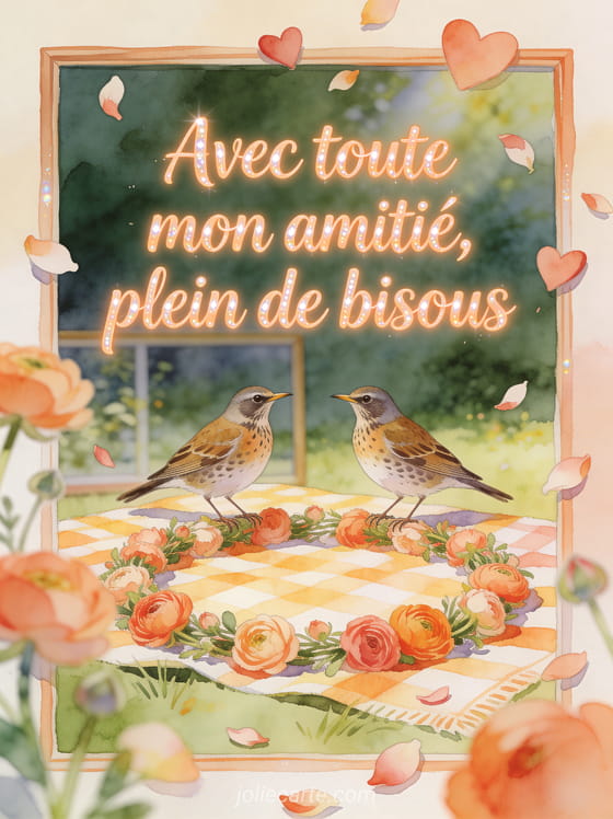 Avec toute mon amitié, plein de bisous une façon chaleureuse d'envoyer des bisous à ses amis