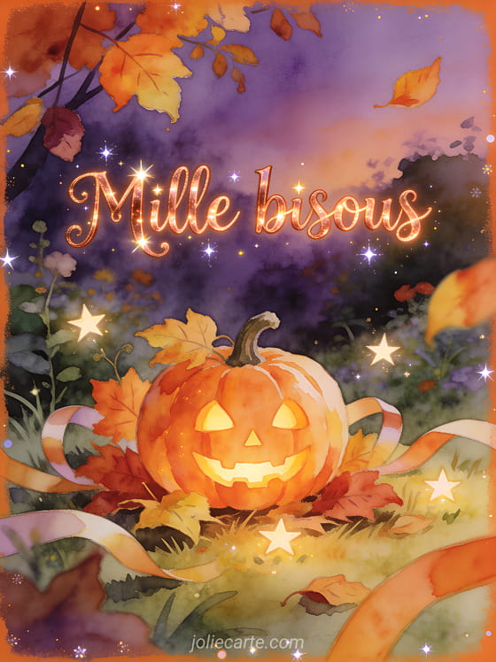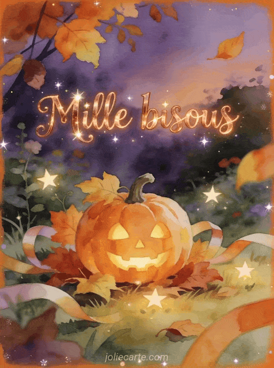 Les gifs bisous halloween sont parfaits pour meler tendresse et ambiance de saison dans un meme message. Cette carte gratuite peut se prolonger avec des bisous a vous adresser, des bonbons remplis de bisous et plein de bisous envoyes pour vous afin de garder un ton chaleureux.