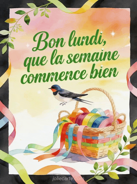Les gifs bonne semaine et bon lundi donnent une impulsion positive dès le premier jour. Cette carte équilibre un lundi gardé lumineux sous la pluie, reprend un souhait de journée réussie et s'ouvre sur un bonjour simple pour lundi.